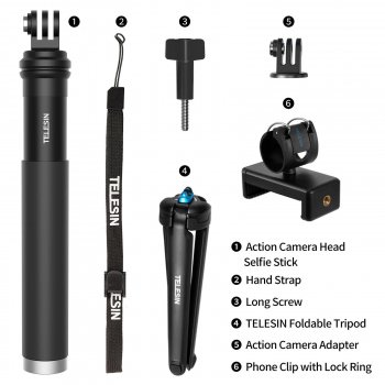 Aluminum Alloy Extendable Selfie Stick Monopod Tripod for Action Cameras and Smartphones